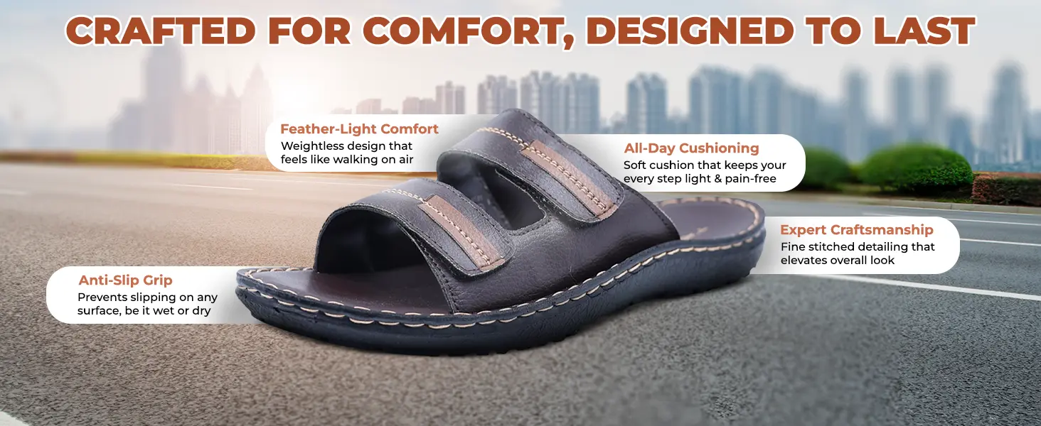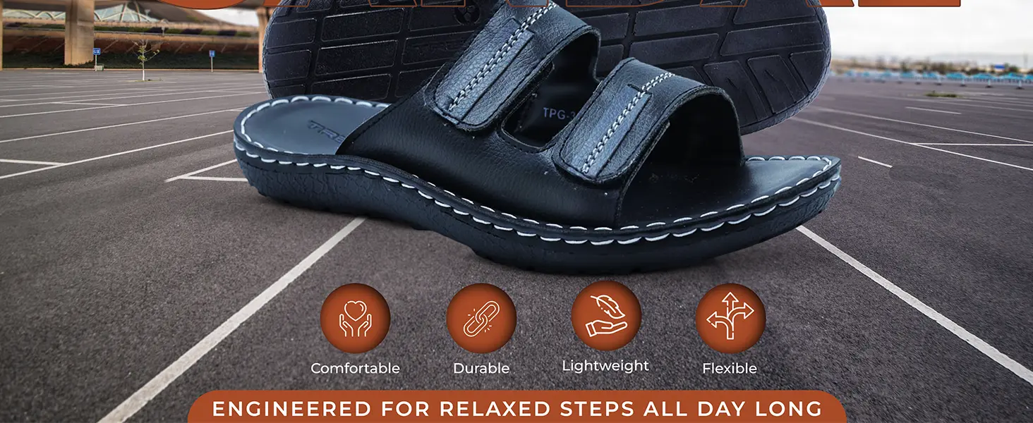 Trekiva Men's Premium Slip-On Sandal | Comfortable Daily Wear Sandal For Office, Outdoors & Home| Flexible & Durable | Anti-Skid Grip With Soft Cushioned Footbed Sandal| TPG-3023