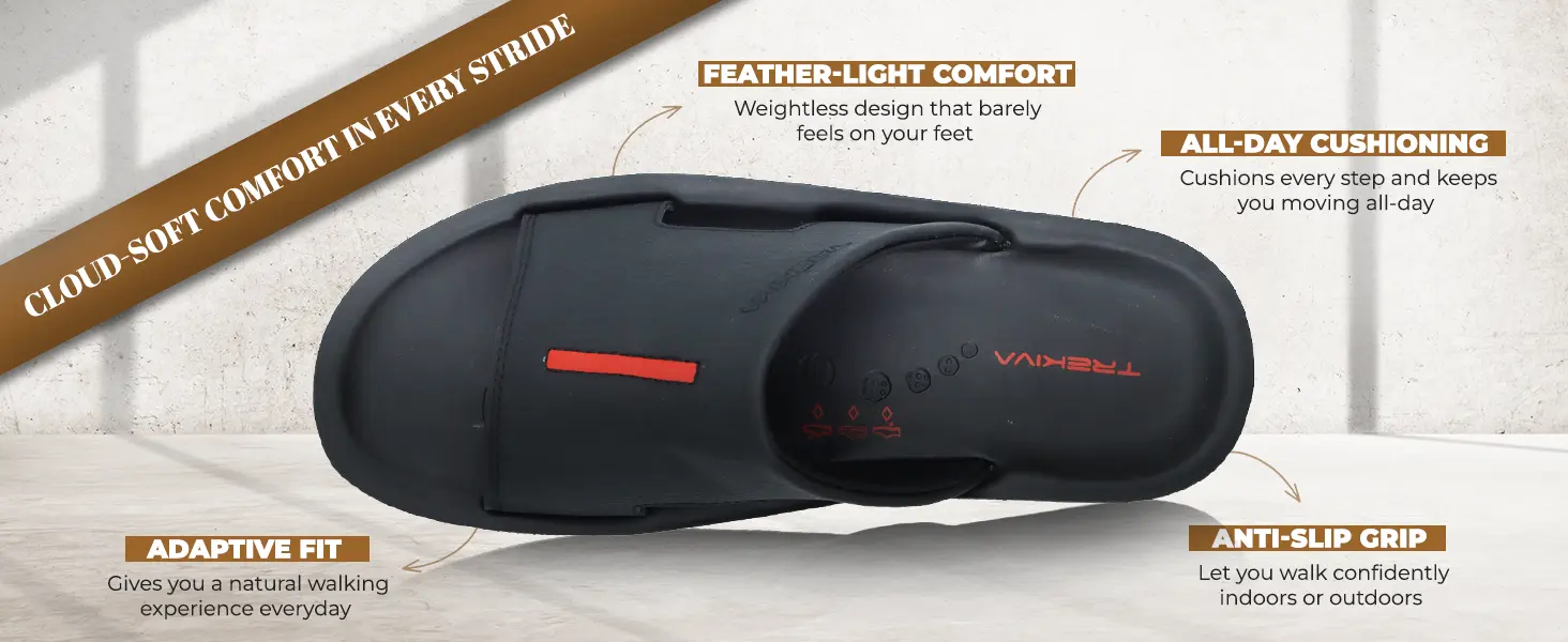 Trekiva Men's Premium Slip-On Sandal | Comfortable Daily Wear Sandal For Office, Outdoors & Home| Flexible & Durable | Anti-Skid Grip With Soft Cushioned Footbed Sandal| TPG-3034