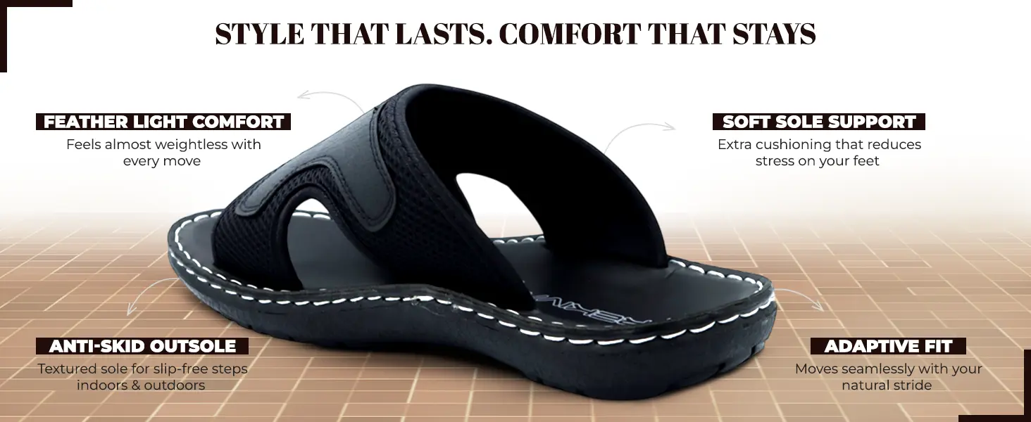 Trekiva Men's Premium Slip-On Sandal | Comfortable Daily Wear Sandal For Office, Outdoors & Home| Flexible & Durable | Anti-Skid Grip With Soft Cushioned Footbed Sandal| TPG-3048