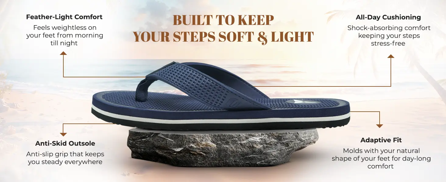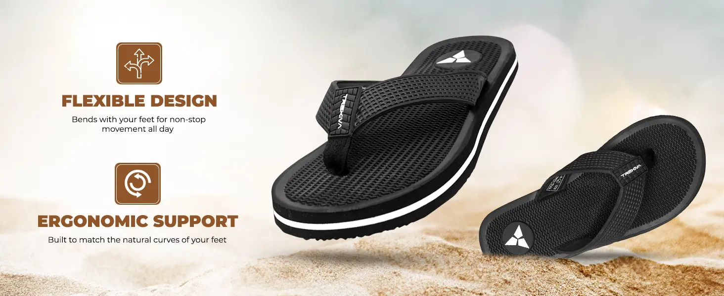 Trekiva Men's Premium Slippers | Comfortable Daily Use Slippers For Home, Outdoors & Travel | Flexible & Durable | Anti-Skid Grip With soft Cushioned Footbed Flip-Flop | TFG-1048