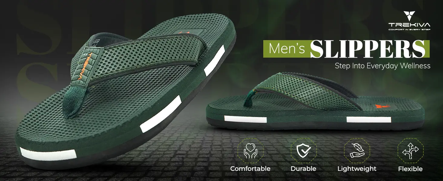 Trekiva Men's Premium Slippers | Comfortable Daily Use Slippers For Home, Outdoors & Travel | Flexible & Durable | Anti-Skid Grip With Soft Cushioned Footbed Flip-Flop | TFG-1052