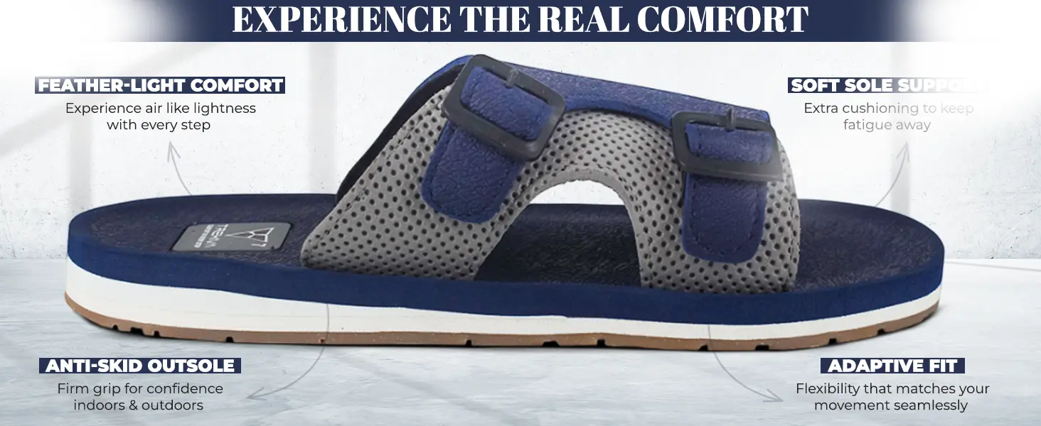 Trekiva Men's Premium Slippers | Comfortable Daily Use Slippers For Home, Outdoors & Travel | Flexible & Durable | Anti-Skid Grip With Soft Cushioned Footbed Flip-Flop | TFG-1057