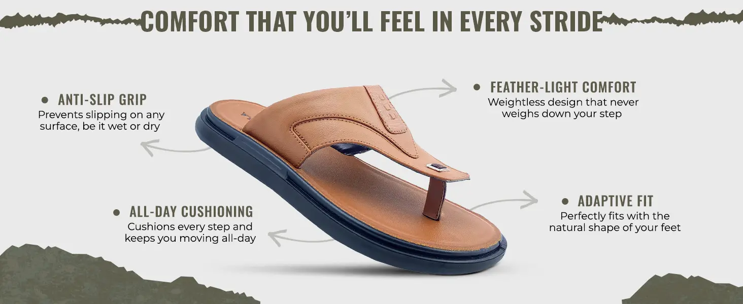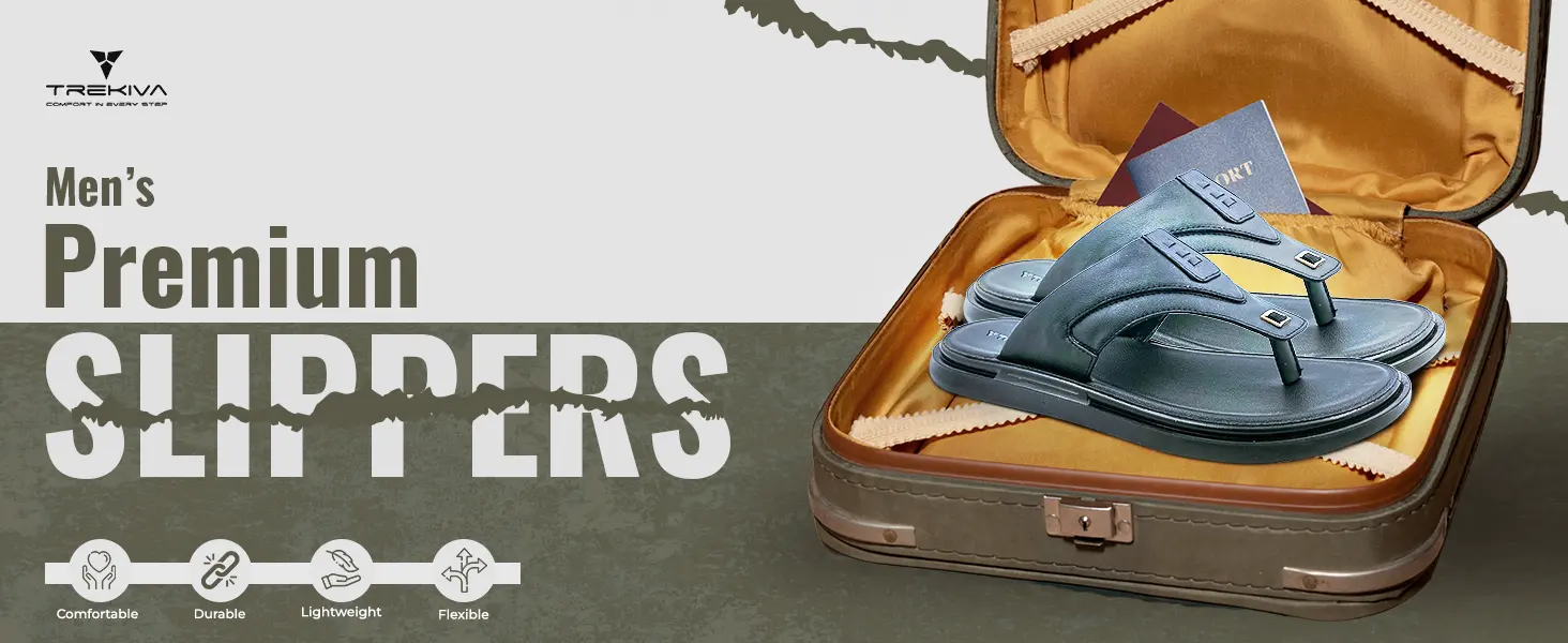 Trekiva Men's Premium Slippers | Comfortable Daily Use Slippers For Home, Outdoors & Travel | Flexible & Durable | Anti-Skid Grip With Soft Cushioned Footbed Flip-Flop | TPG-3005