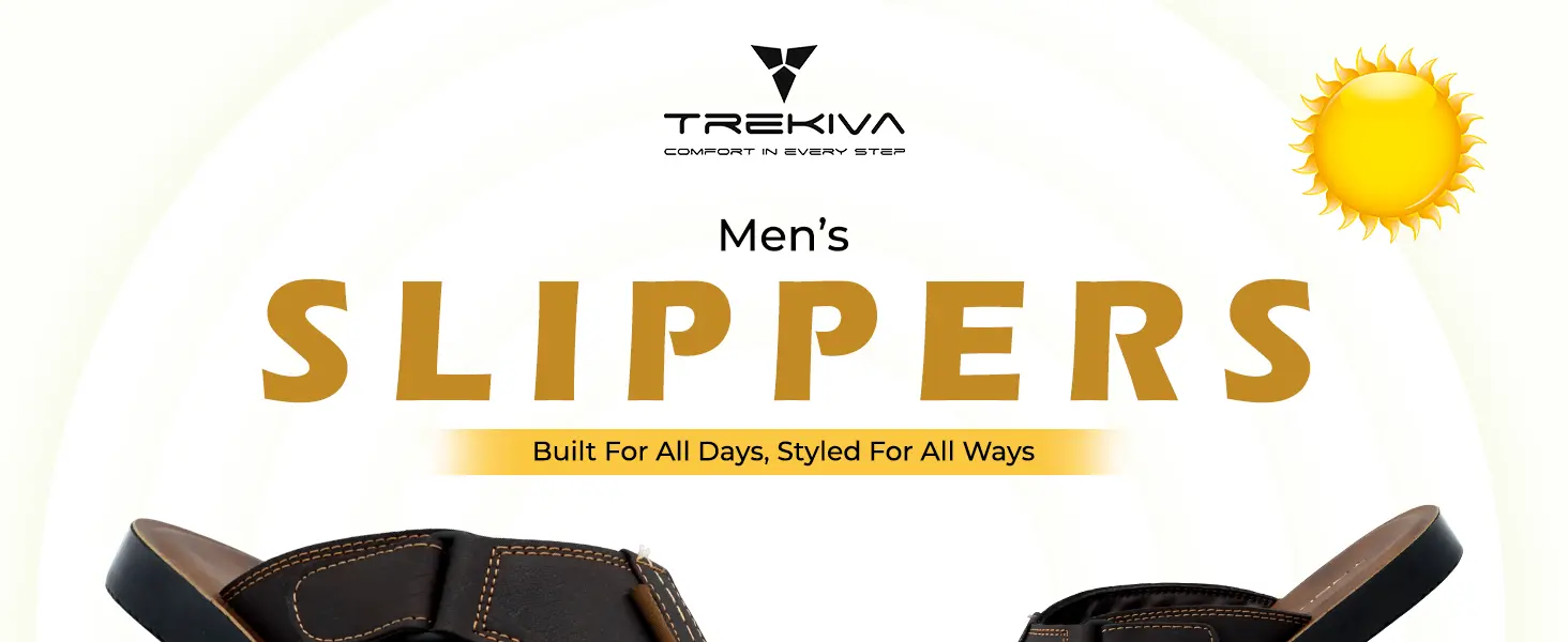 Trekiva Men's Premium Slippers | Comfortable Daily Use Slippers For Home, Outdoors & Travel | Flexible & Durable | Anti-Skid Grip With Soft Cushioned Footbed Flip-Flop | TPG-3044