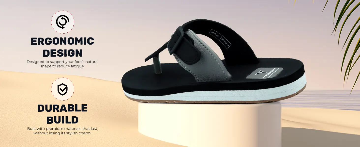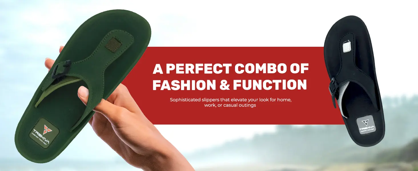 Trekiva Men's Premium Slippers | Comfortable Daily Use Slippers For Home, Outdoors & Travel | Flexible & Durable | Anti-Skid Grip With Soft Cushioned Footbed Flip-Flop | TR-T0101