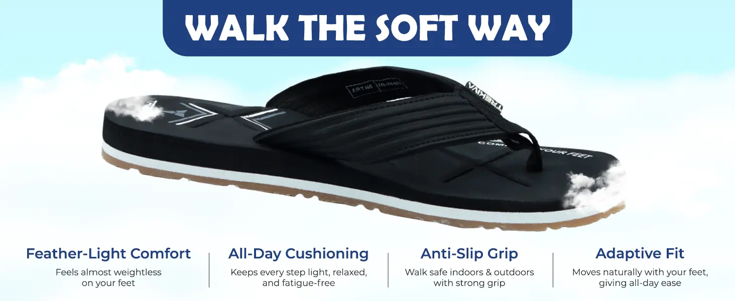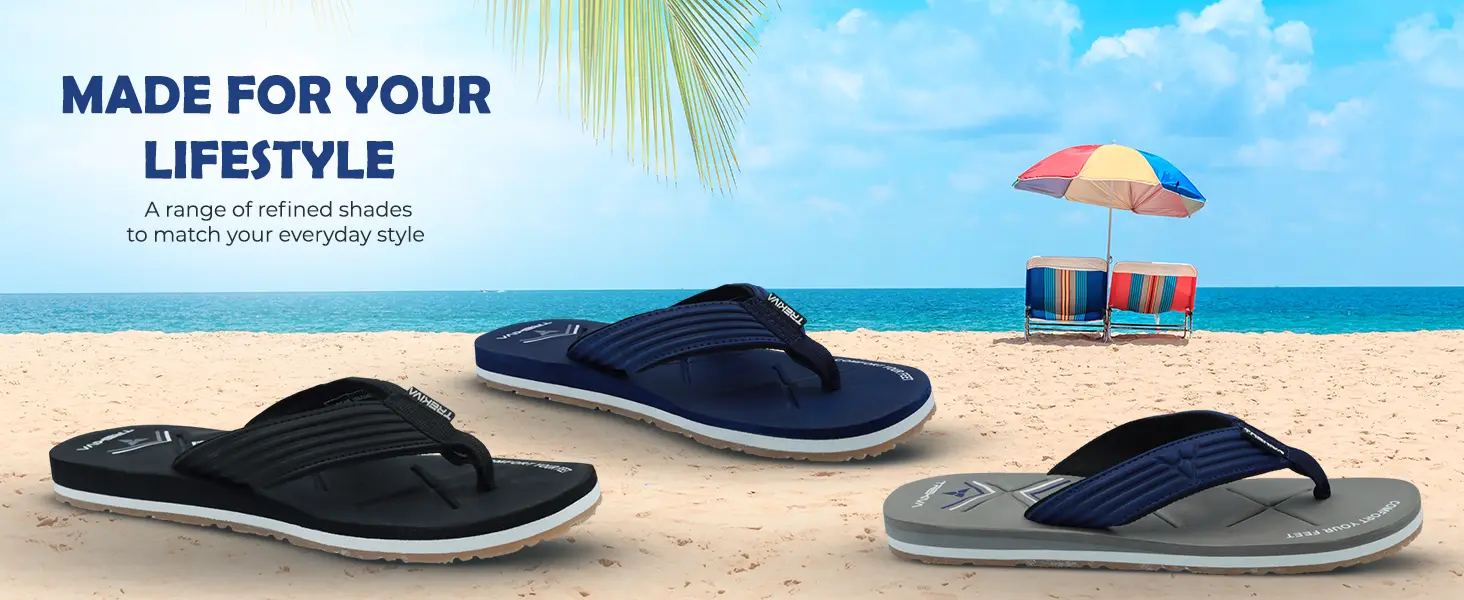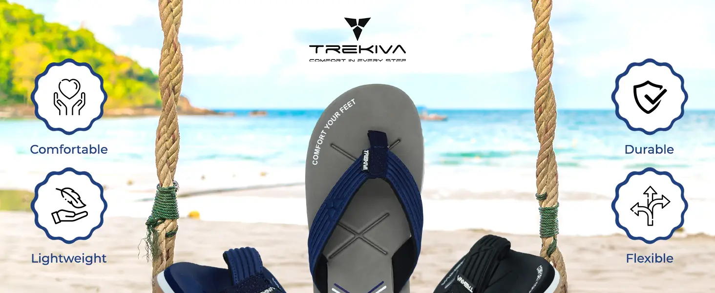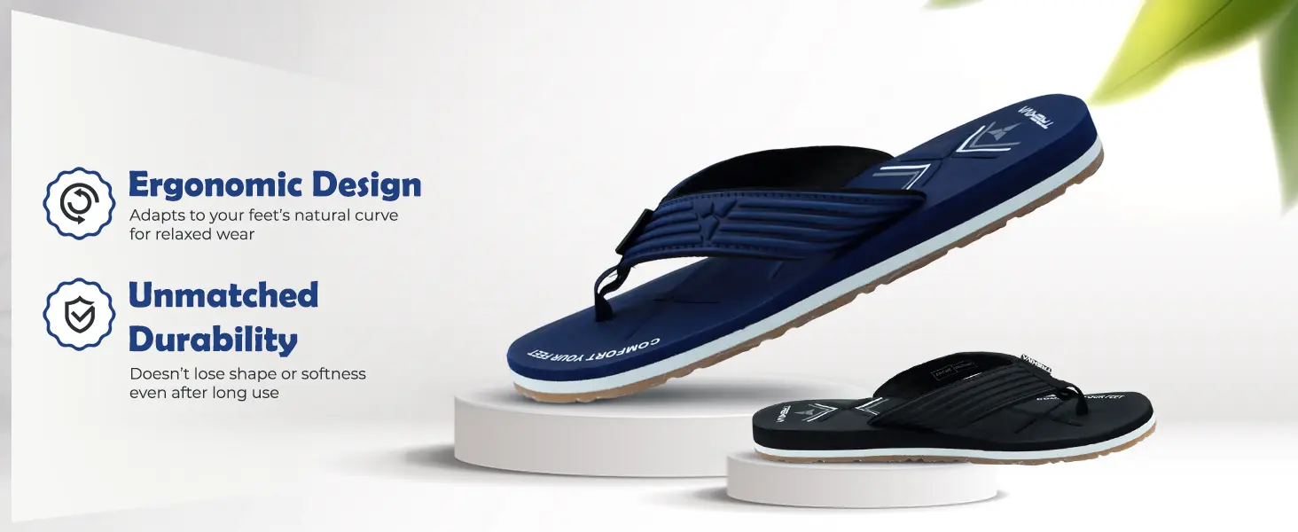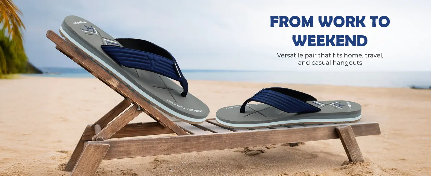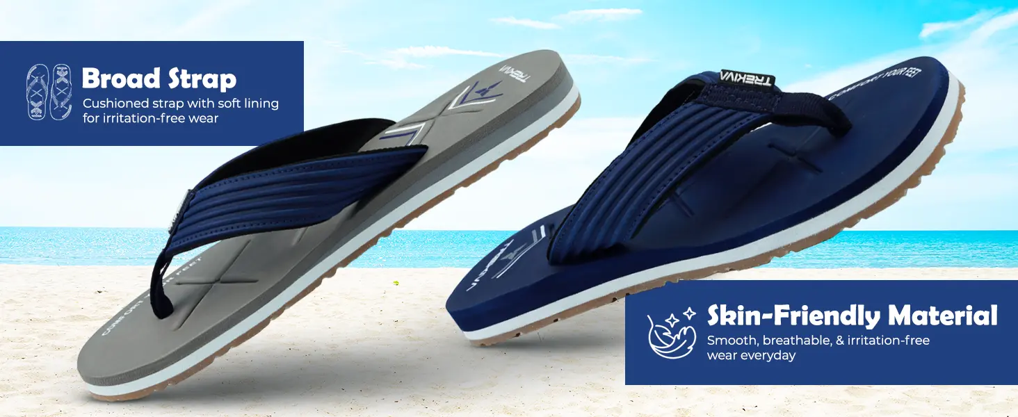 Trekiva Men's Premium Slippers | Comfortable Daily Use Slippers For Home, Outdoors & Travel | Flexible & Durable | Anti-Skid Grip With Soft Cushioned Footbed Flip-Flop | TR-T0401