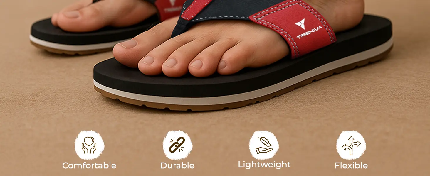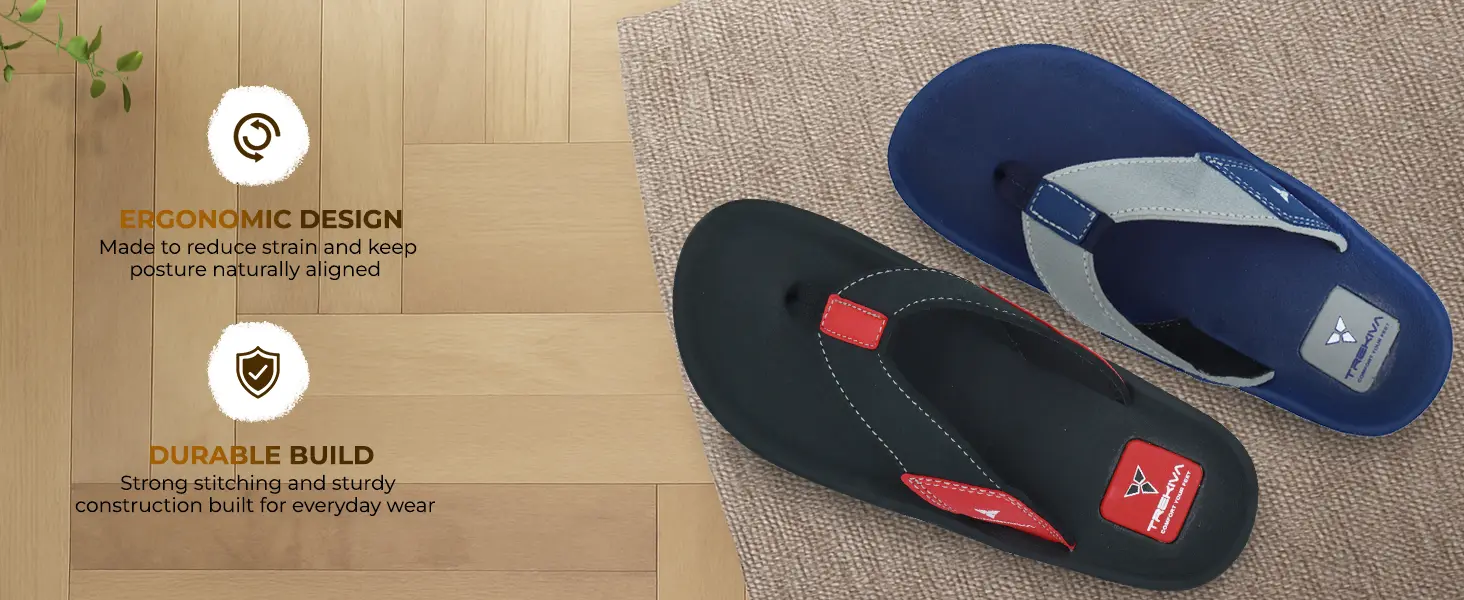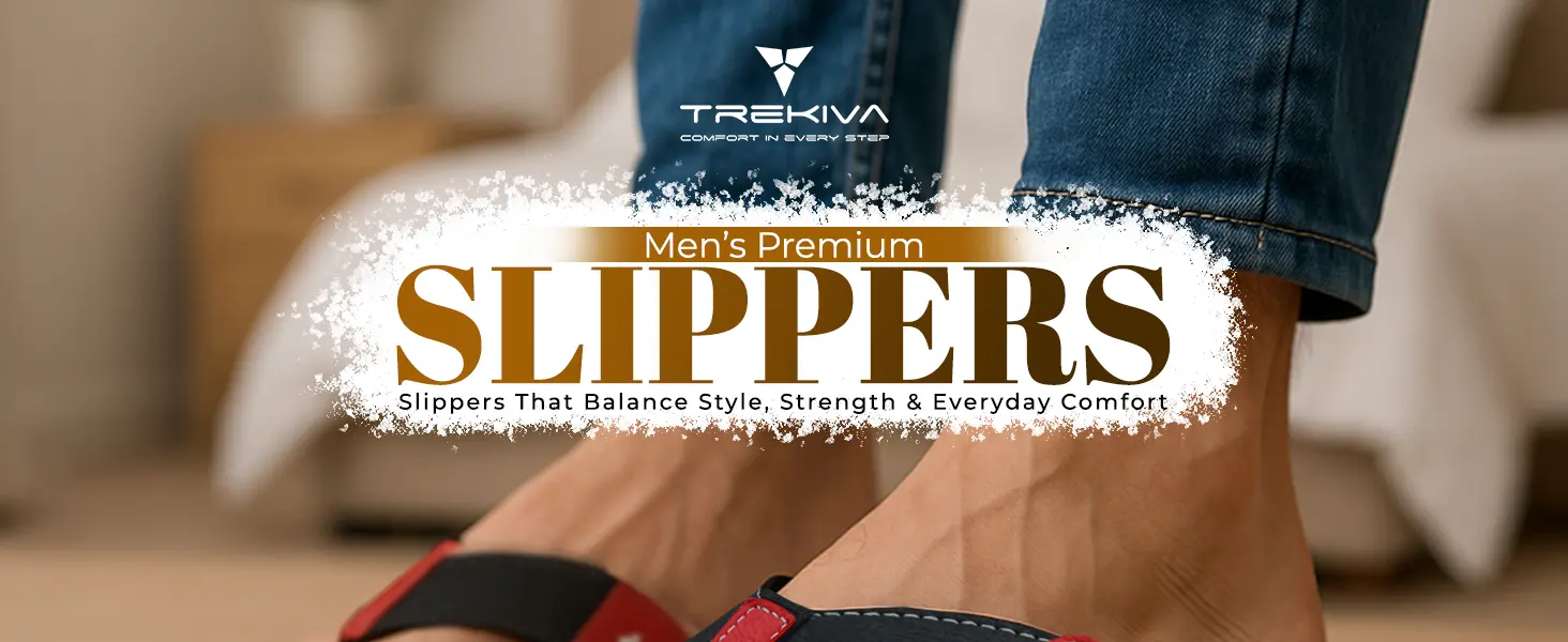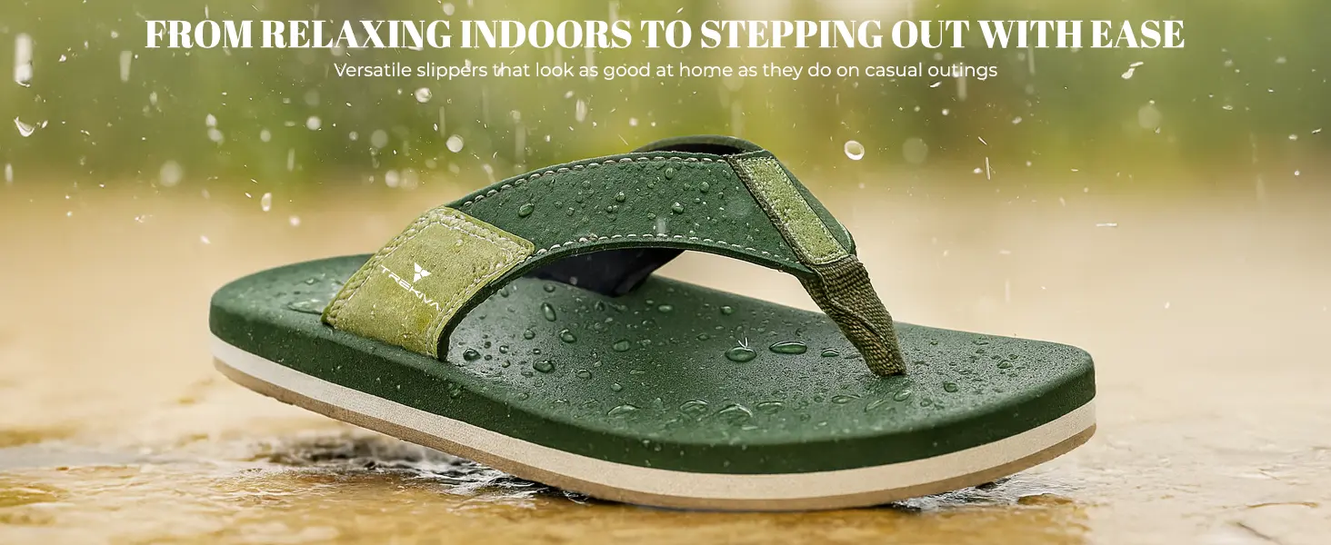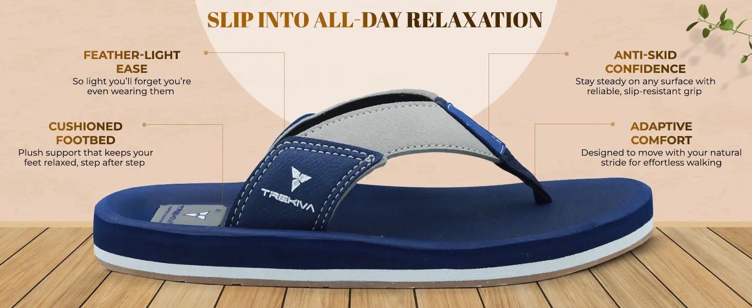 Trekiva Men's Premium Slippers | Comfortable Daily Use Slippers For Home, Outdoors & Travel | Flexible & Durable | Anti-Skid Grip With Soft Cushioned Footbed Flip-Flop | TR-T0501